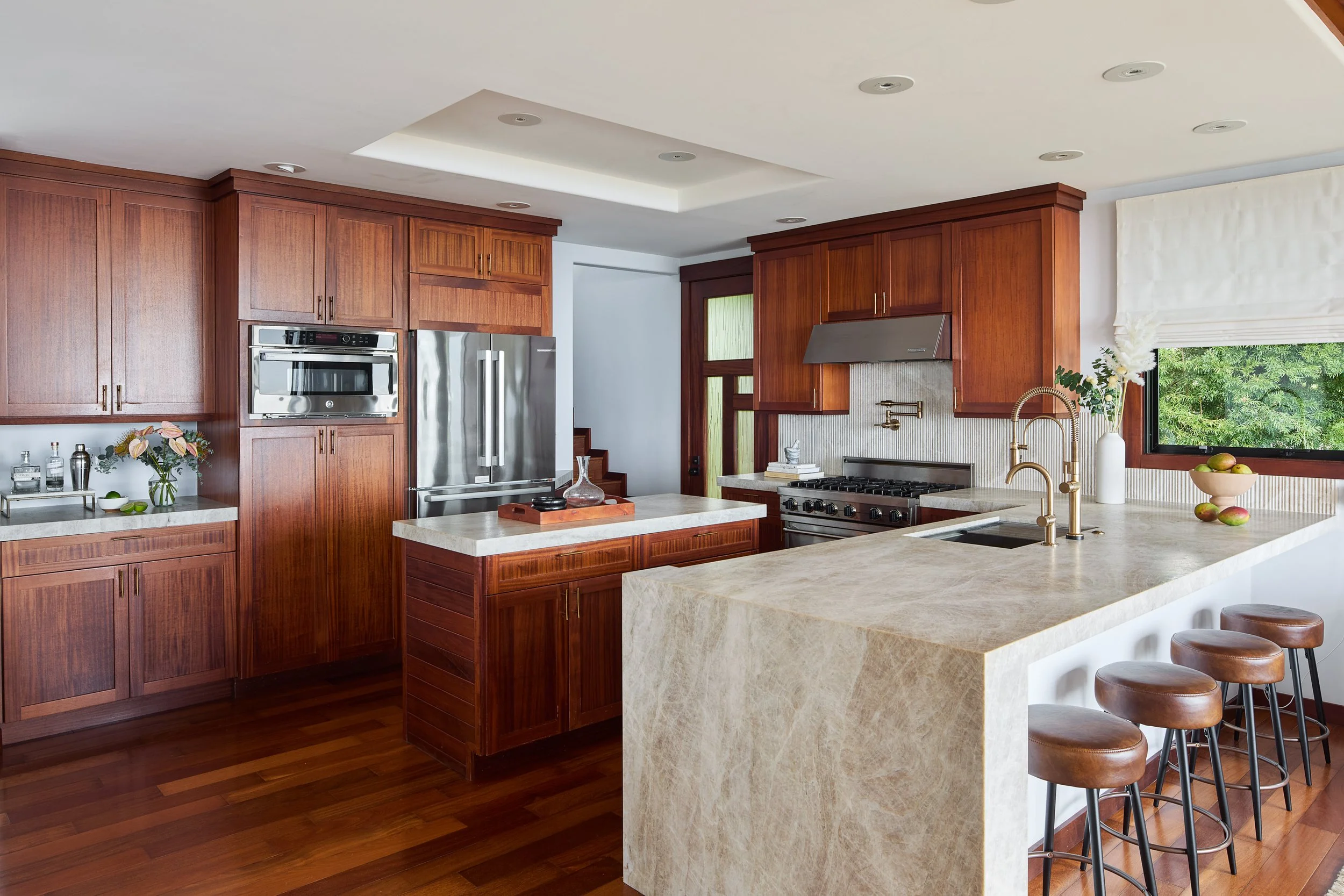 The spacious Ohana is attached by a breezeway and sits above a bonus room with a pull out sofa, peloton, and large flat screen TV. A private lanai provides the ideal spot for a morning cup of Kona Coffee.